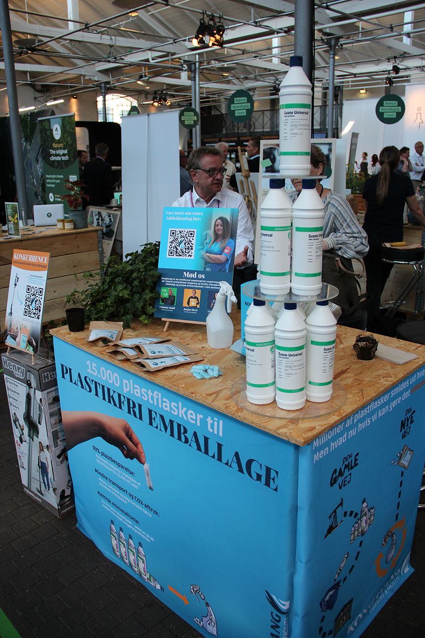 D. 20. maj 2025 præsenterede vi vores tabletløsning for de fremmødte til Børsen Bæredygtig Summit i Øksnehallen, København. Det var en stor succes med mange besøgende til spændende samtaler om bæredygtig rengøring, mindre plastikaffald og løsninger til den grønne omstilling.