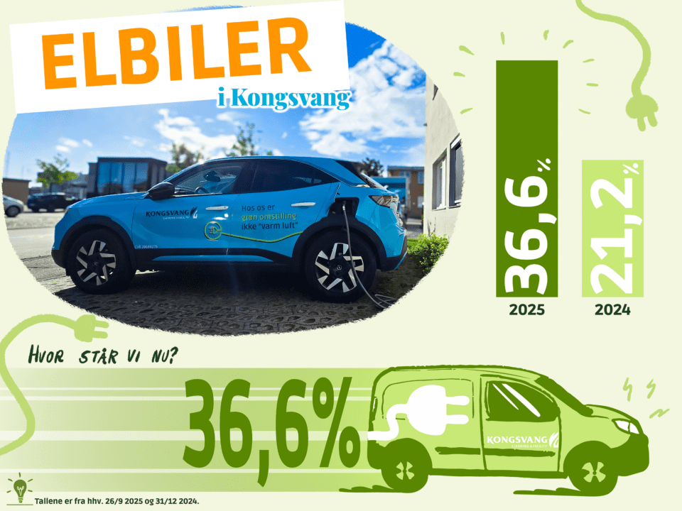 Da vi i 2023 satte os et ambitiøst mål om at have 25% elbiler i 2025, vidste vi, at det ville kræve investeringer, logistik og vilje. Nu har vi allerede overhalet vores eget mål: 36,6% af vores biler kører på el.